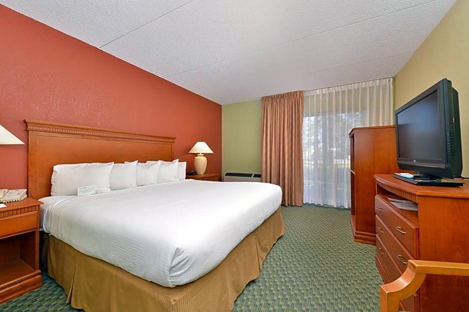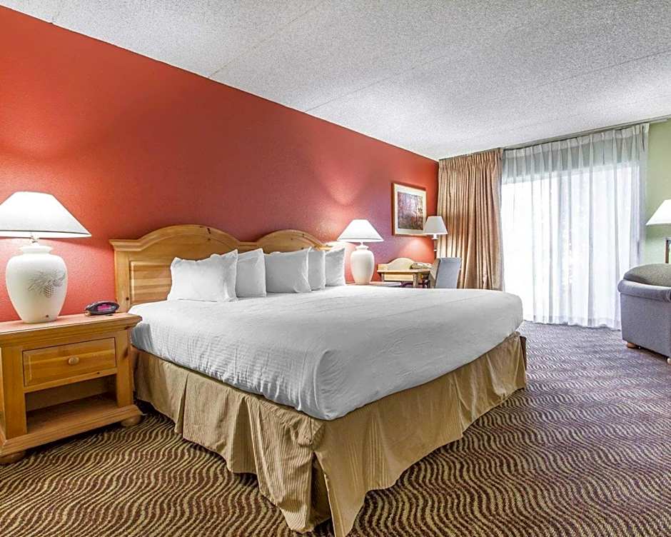 Had a large room with a balcony & sliding screen door that worked properly, very pleasant to be able to enjoy my coffee there in the morning and listen to the wind blow through the pine trees. Bed was very comfortable. Good location. Refrigerator and microwave is nice to have in room and love having an ice machine on the property. Breakfast was good, they had hot food🥚🧇