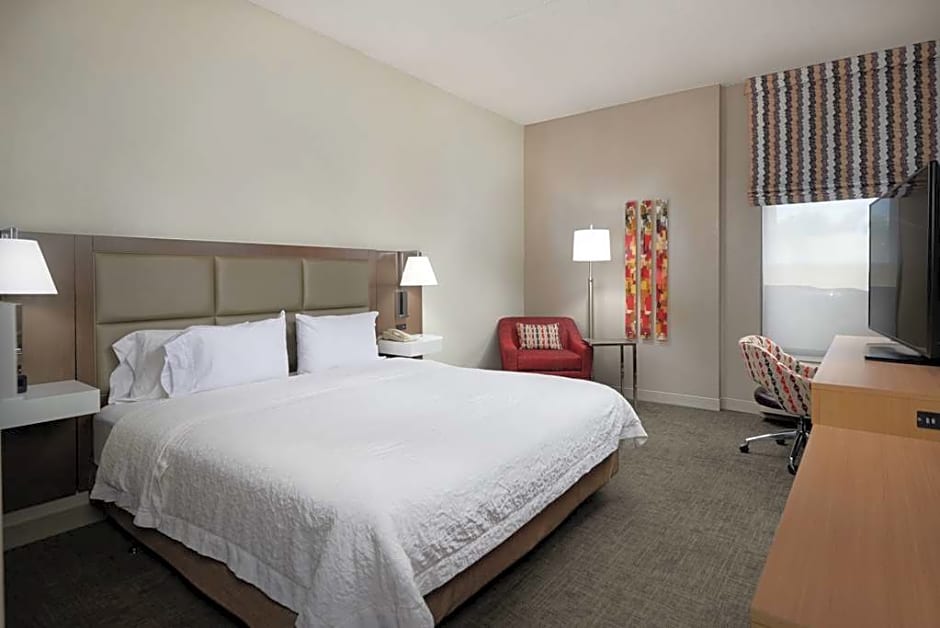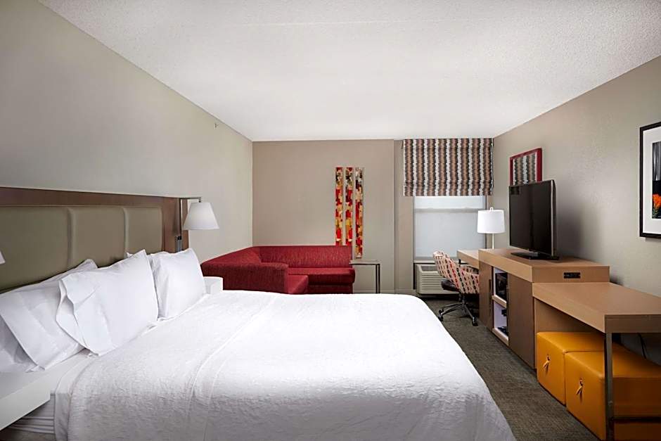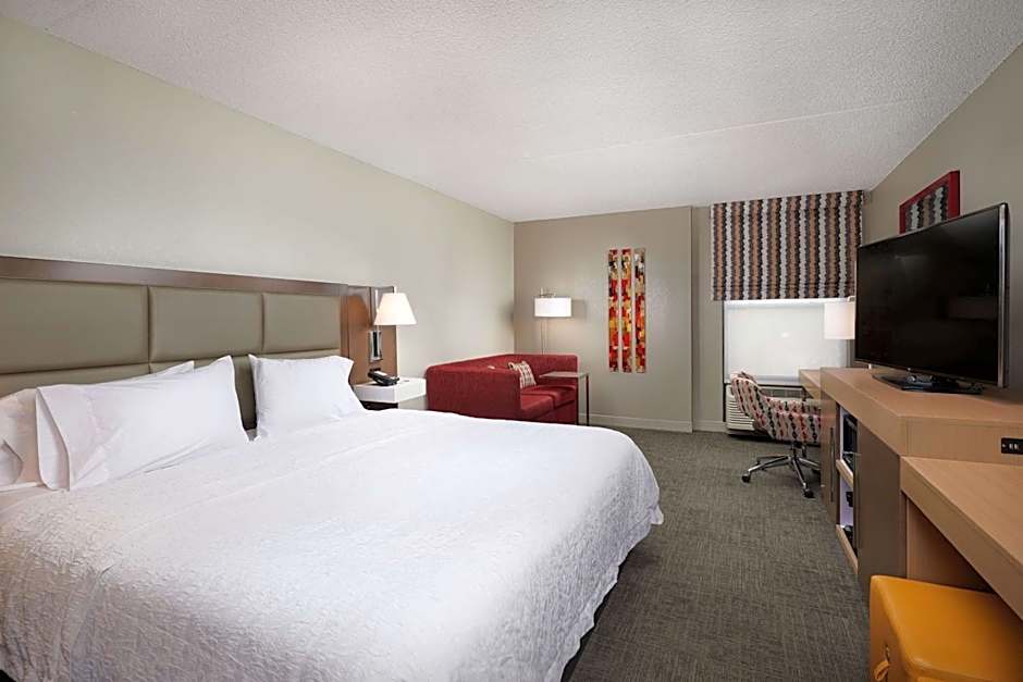 Whirlpool, easy chair, desk, 37-inch TV, free WiFi Relax in this king suite with a clean and fresh Hampton bed® and whirlpool tub. Sink into the easy chair with ottoman and watch movies on the 37-inch HDTV. Catch up with work at the large desk. Surf the web with free WiFi. Refresh your senses in the bathroom, complete with shower and plush towels. Enjoy the convenience of having a coffeemaker in the room.