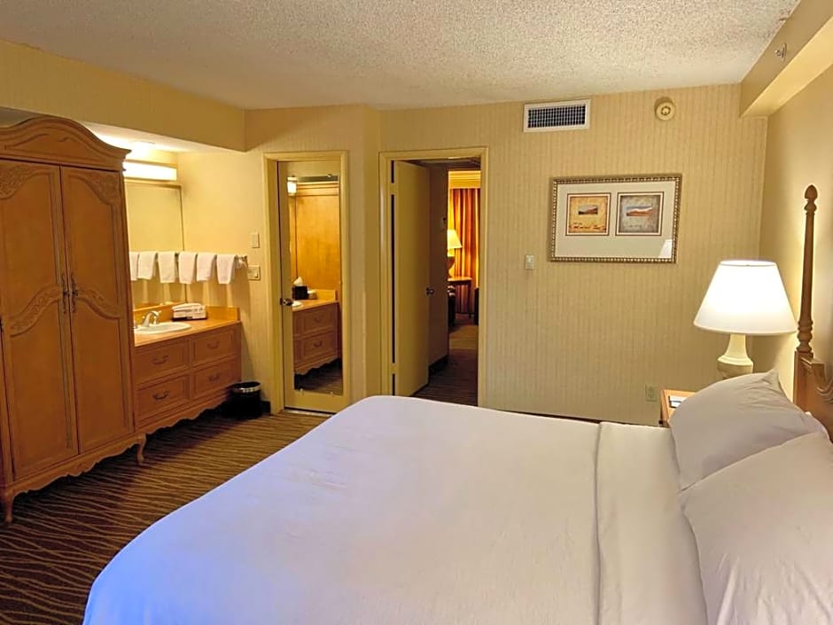 Get comfortable in this 495 sq. ft., two-room, one king-sized bed suite, featuring separate living and sleeping areas. Sleep well on deluxe bedding, and enjoy home-like amenities such as a mini kitchen, full-sized sofa bed, oversized work area and 2 HDTVs. Pamper yourself with upgraded bath towels and signature bath amenities.