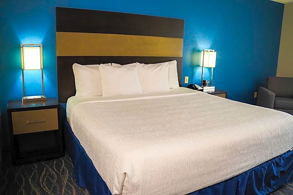 At La Quinta by Wyndham Phoenix I-10 West, the available room types are King Room - Non-Smoking, Executive King Room, and Deluxe Queen Room with Two Queen Beds. The rooms are all double occupancy and smoking is not allowed. The King Room and Executive King Room both have a room size of 301 sqft and accommodate 2 adults and 1 child. The Deluxe Queen Room with Two Queen Beds is larger at 3767 sqft and accommodates 4 adults and 3 children. The King Room and Executive King Room have 1 King size bed, while the Deluxe Queen Room has 2 Queen size beds.