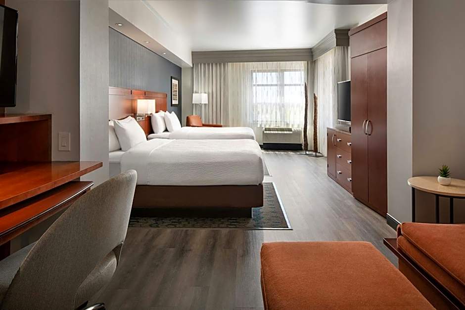 The Courtyard by Marriott Scottsdale Salt River offers a variety of room types including Family, Double, and Suite options. All rooms are non-smoking and have a similar occupancy, accommodating up to 4 adults and 3 children. Bed sizes vary between King size beds and Queen size beds, with some rooms also featuring a Sofa Bed. The room sizes range from 344 sqft to 764 sqft.
