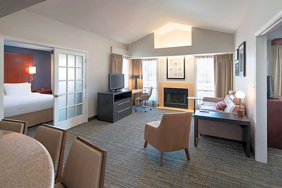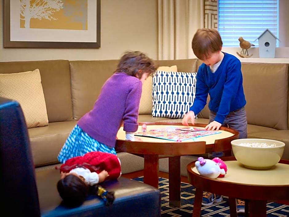 The hotel offers Queen Studio Suites and Studio Suites with King beds, both accommodating up to 3 adults and 2 children. The Two Bedroom Suites are available with either two King beds or one King bed and a sofa bed, accommodating up to 5 adults and 4 children. All rooms have a size of 463 or 764 sqft and are non-smoking.