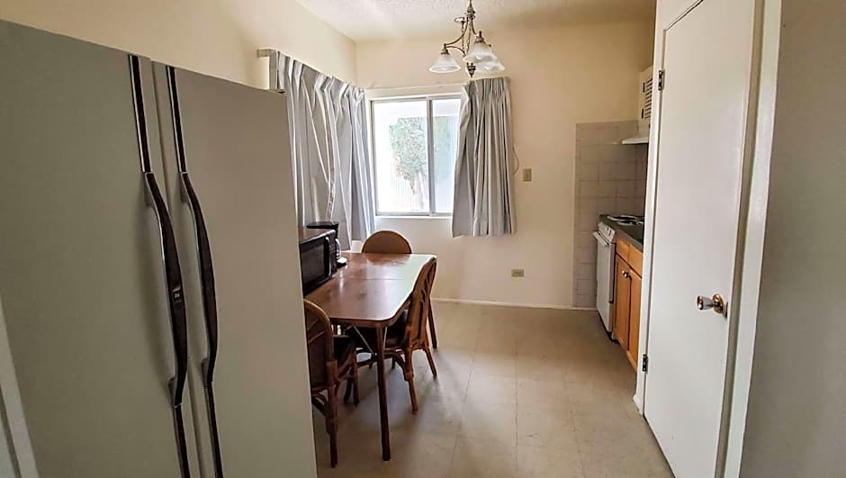 The owner is very kind and capable. The room had everything we needed. Full kitchen was great. The place is quiet at night, did not hear the neighboring guests at all. The shower was strong and hot. The location was ideal, close to the army base and restaurants, but on the edge of town. Just what we needed! We also loved the decor because some of it was vintage, but still in perfect working order! Loved it!