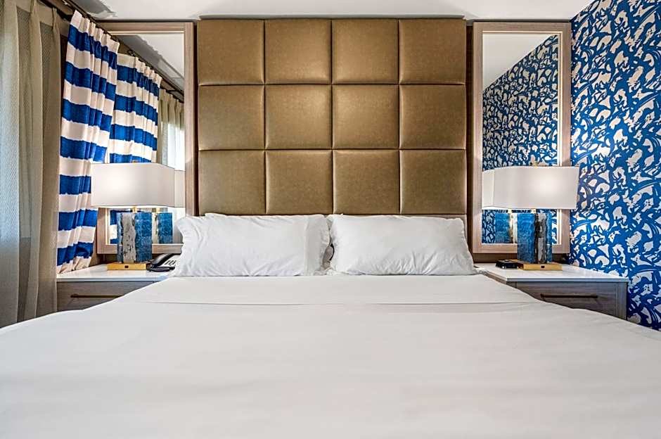 The hotel offers a variety of rooms including suites with 1 King Bed, 1 Queen Bed, or 2 Queen Beds, some with pool or city views. All rooms are non-smoking and accommodate 2 adults and 1 child. Bed sizes range from Queen to King.