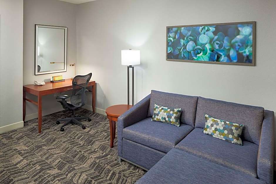 This suite features a separate seating area with a sofa bed, microwave and refrigerator.