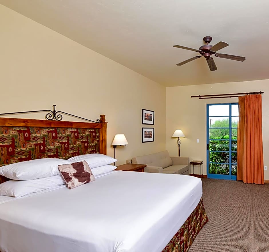 The Mexican-inspired rooms and grounds are perfect for a Tucson stay. The landscaping is pleasant with meandering paths through many varieties of cacti. It's right in the middle of town and wonderful restaurants, yet because of high walls around the grounds, it feels like you are further out in the desert. Our simple king room was very roomy; it had a comfy swivel chair and one at a desk. The towels were thick and fluffy and the bed incredibly comfortable. I loved the Mexican-inspired ambiance.