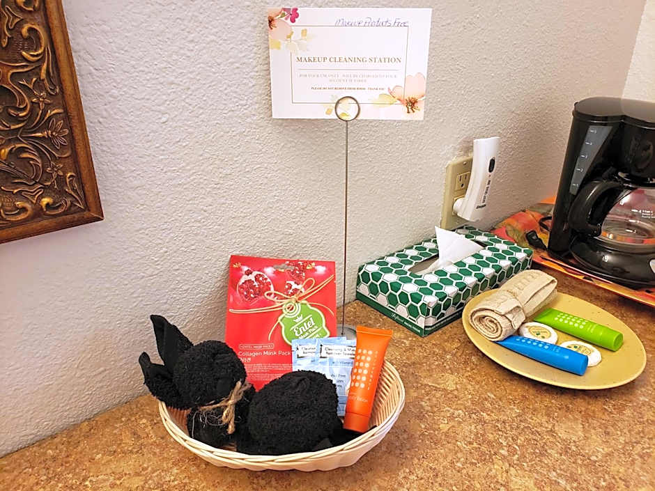 Cable TV is featured in this room. A small fridge, microwave, and coffee-making facilities are included.