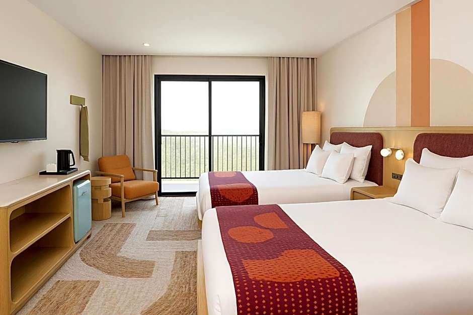The hotel offers King Rooms, Premium King Rooms, Deluxe Queen Rooms with Two Queen Beds, and Queen Rooms with Two Queen Beds. The King Rooms and Premium King Rooms have a King size bed while the Deluxe Queen Rooms and Queen Rooms have two Queen size beds. All rooms are non-smoking and vary in size from 301 sqft to 495 sqft. The rooms can accommodate between 2 and 4 adults, and between 2 and 4 children depending on the room type.