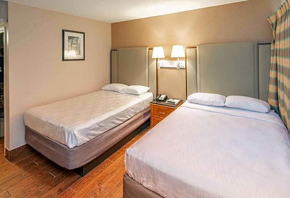 Budgetel Inn & Suites offers a variety of room options, including 2 Beds Suite and Full Size One Beds Handicap Nonsmoking rooms. Accommodations cater to 2 adults and 1 child with room sizes of 215 sqft and featuring double beds. Smoking is not allowed in any of the rooms provided. Some rooms are specifically designed for hearing-impaired guests.