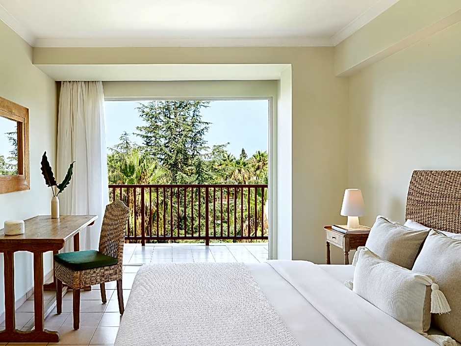 Room options range from Signature with two Queen beds to Honeymoon with a King and a Jetted Tub, and Deluxe 1 King Bed as well as other Deluxe and Signature configurations. Additional choices include Signature King, Basic King, Basic 2 Queen, Queen Room with two Queens, and various suites, including a Penthouse Apartment at 495 sqft. Some spaces offer panoramic views, such as Double Room Panoramic View and Superior 2 Twin Panoramic View. Most rooms accommodate two adults, with a few layouts allowing an extra child.