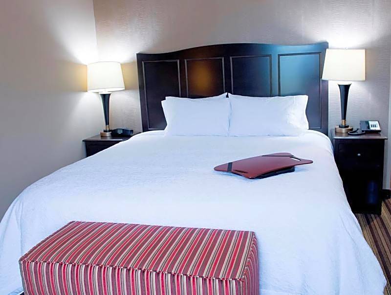 LCD HDTV, sofa bed, work space, coffeemaker, free WiFi Relax in this cozy room which features a clean and fresh Hampton bed®, a dedicated work space and a sofa bed to sleep additional guests. Catch up on business at the spacious work desk and stay connected with free WiFi. The bathroom contains soft towels, ample dressing space and a shower with a curved shower rod for added comfort. Additional amenities include an LCD TV with HD channels and a coffee/tea maker.