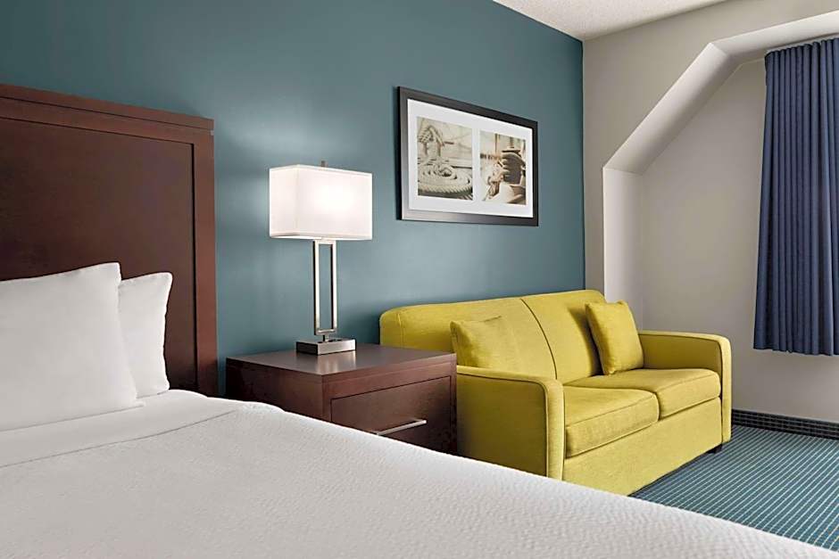 The hotel offers a King Suite with a King size bed and a sofa bed, accommodating up to 4 adults. There is also a Queen Suite with Two Queen Beds, accommodating 4 adults. Both of these rooms are non-smoking. Additionally, there are non-smoking King and Queen Suites with a size of 344 sqft, accommodating 4 adults and 3 children. The King Suite has a King size bed, while the Queen Suite has a sofa bed and 3 Queen size beds.