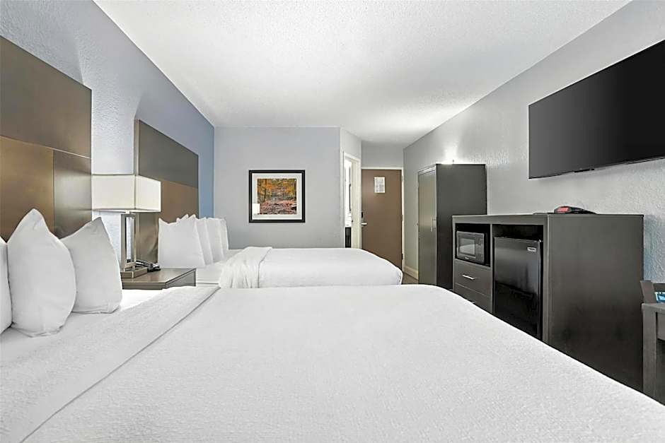 The Best Western Southwest Little Rock hotel offers a variety of room types. These include a Queen Room with Two Queen Beds, a King Room with Roll-In Shower - Disability Access, a King Room with Mobility Accessible Tub, and a King Room. All rooms are non-smoking and can accommodate 2 adults and 1 child, except for the Queen Room which can accommodate 4 adults and 3 children. The bed sizes range from 1 King size bed to 2 Queen size beds.