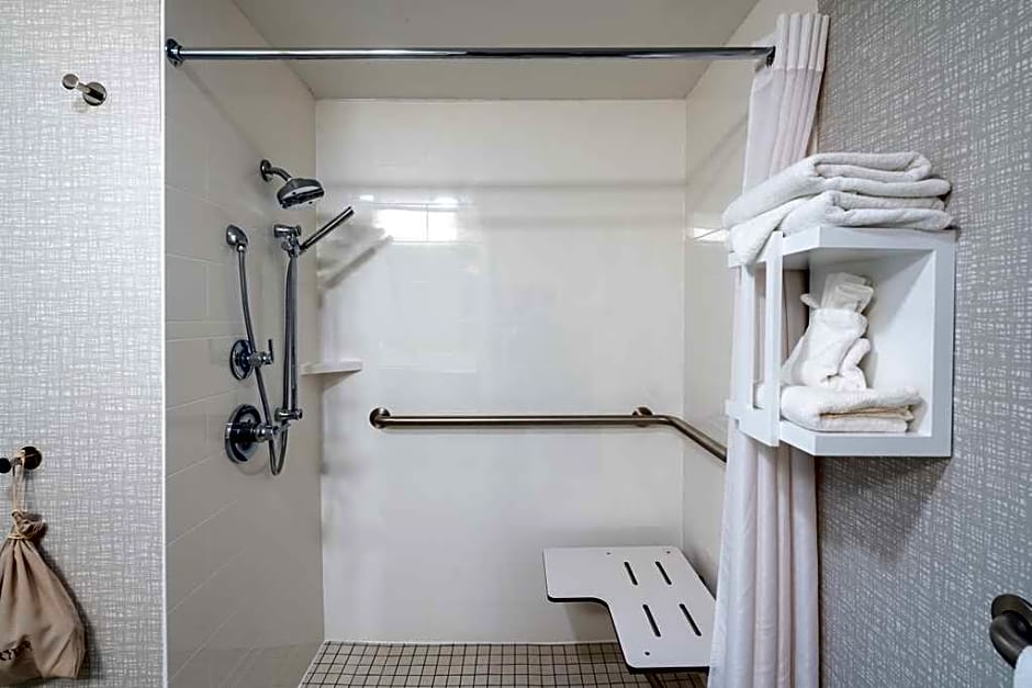 Sitting area, sofa, 32-inch HD TV, work desk, coffeemaker, free WiFi access Enjoy a restful stay in this spacious two-room suite featuring a king bedroom with a clean and fresh Hampton bed®, a 32-inch HD TV and a comfortable seating area with a sofa, lounge chair and a large work desk. This suite also features a coffeemaker and free WiFi access to help you stay connected throughout your stay. The bathroom contains plush towels and a shower featuring a curved shower rod for added space and light.
