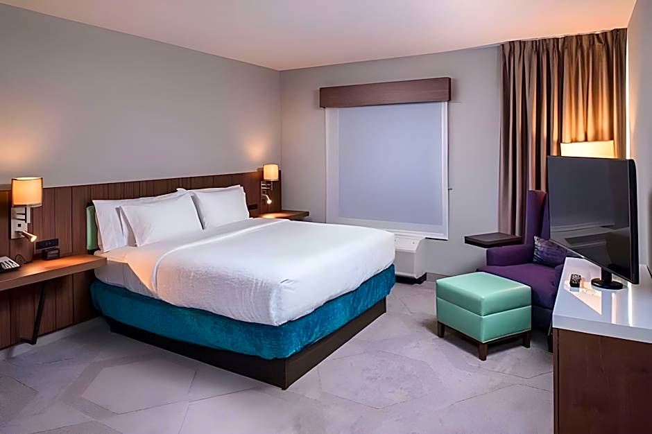 The check in process was easy, staff was friendly, and the room smelled SO GOOD when we first walked in! The bed was comfortable and the bathroom was stocked with towels, shampoo, conditioner, soap, and even a makeup wipe! There was a nice Keurig coffee machine in the room, with coffee cups, sugar, a sugar substitute, and stir sticks. The rooftop lounge/grill was really beautiful with a great mature & classy vibe & is definitely a must see!!!