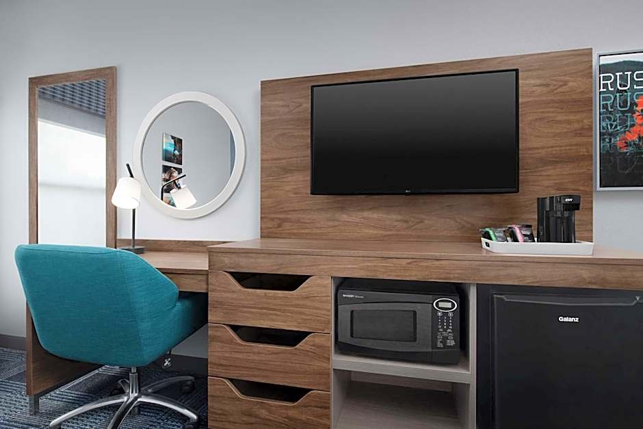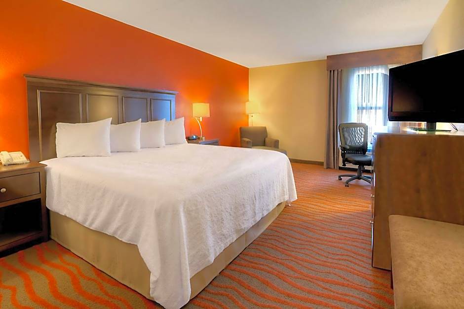Microwave, refrigerator, sofa bed, 32-inch HDTV, work area, free WiFi, tea/coffeemaker Have a relaxing stay in this king room that features our clean and fresh Hampton bed®. The room includes a plush sofa bed, a 32-inch HDTV as well as a spacious work desk and free WiFi to let you catch up on work while traveling. Feel at home with amenities including a refrigerator, a microwave and a tea/coffeemaker. In the bathroom you'll enjoy fluffy towels, a WaterPik® showerhead and curved shower rod for added space and light.
