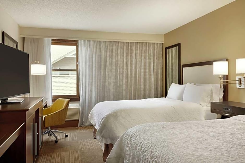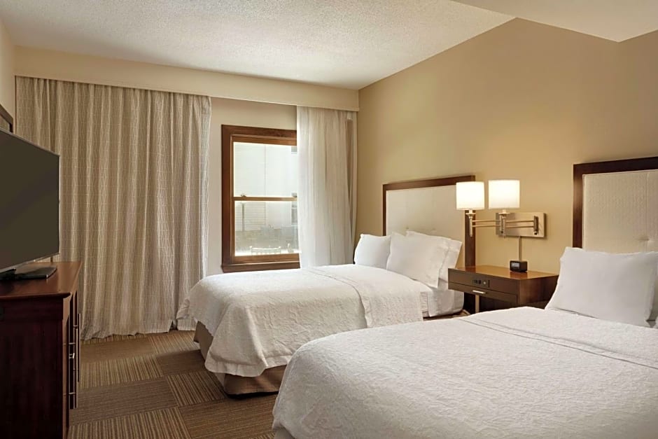 Free WiFi, 32-inch HDTV, kitchen, desk & workspace, coffeemaker, separate seating area Enjoy a restful stay in this spacious non-smoking two room suite which contains two double clean and fresh Hampton beds®, a kitchen and a soft seating area. Relax on the plush sofa or lounge chair and watch a movie on the 32-inch HDTV or catch up on work at the desk with free WiFi access. Savor a freshly brewed coffee from the coffeemaker provided. The bathroom provides fluffy towels, a shower with WaterPik showerhead and curved shower rod for extra light and space in the shower.