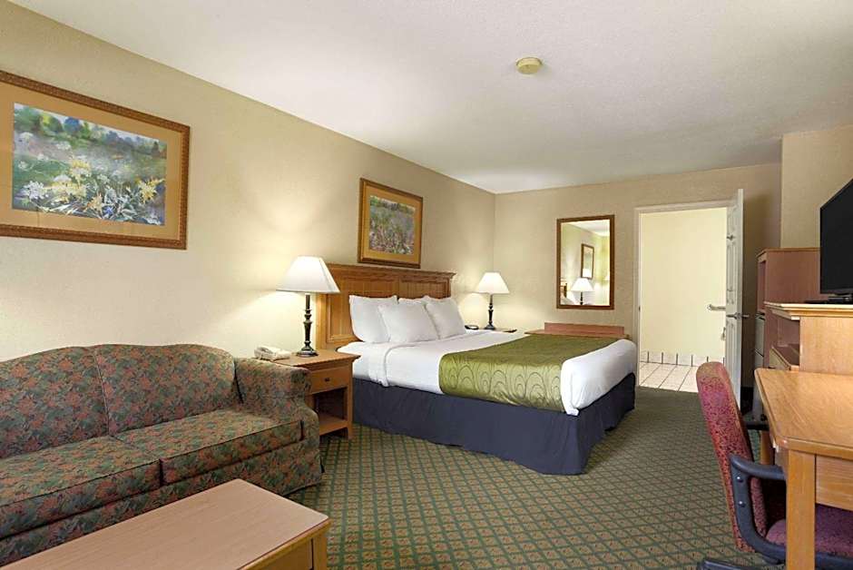The types of rooms available at Days Inn & Suites by Wyndham Stuttgart include King Rooms, Queen Rooms, Queen Rooms with Two Queen Beds, Studio King Suites, and Business King Rooms. All rooms are non-smoking. The King Rooms can accommodate 2 adults and 1 child, while the Queen Rooms and Queen Rooms with Two Queen Beds can accommodate 2 adults and 1 child or 5 adults and 4 children, respectively. The Studio King Suites and Business King Rooms can accommodate 4 adults and 3 children, and they have a larger room size of 538 sqft.