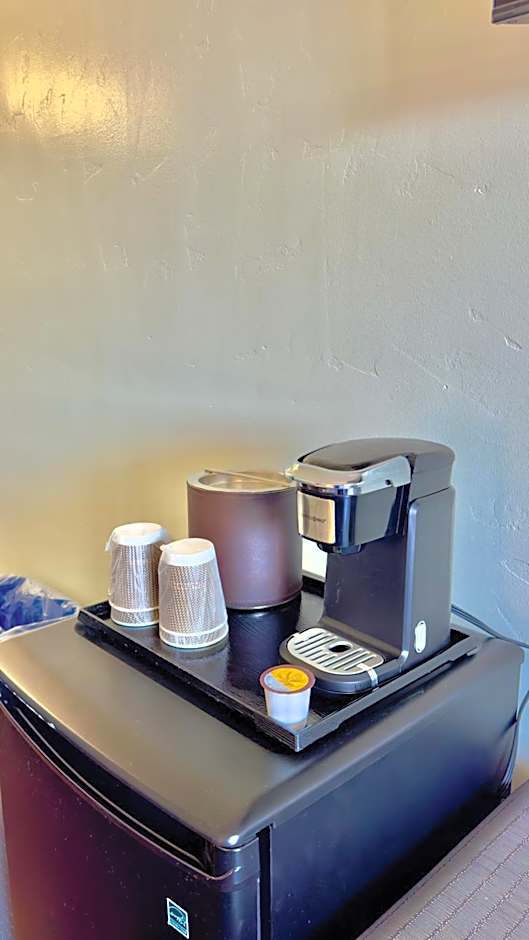 This ADA room offers a TV with premium movie channels, a coffee machine, a microwave, a refrigerator, an in-room safety deposit box, and an private bathroom with a hairdryer and free toiletries.