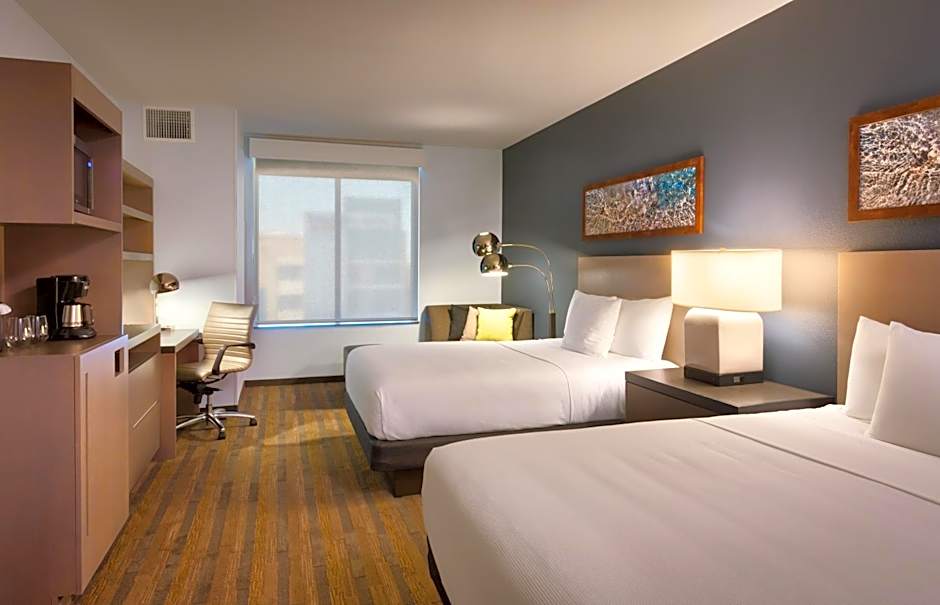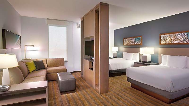 The Hyatt House at Anaheim Resort/Convention Center offers a variety of suite options ranging in size from 398 to 786 sqft. All rooms are non-smoking and can accommodate a maximum of 6 adults and 4 children. Bed sizes include queen and king beds, as well as sofa beds and bunk beds in some rooms.