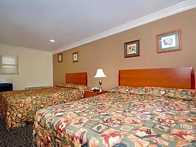 The Motel 6-Anaheim, CA - Convention Center offers various room types. These include Queen Suites, Deluxe Quadruple Rooms, King Rooms with Roll-in Showers (Disability Access), King Rooms, and Queen Rooms with Two Queen Beds. All rooms are non-smoking and have a size of 205 sqft. Occupancy ranges from 2 adults and 1 child to 6 adults and 4 children, depending on the room type. Bed sizes range from King to Queen.