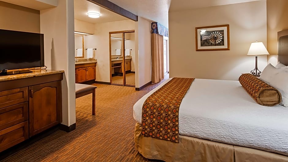 The Best Western Casa Grande Inn offers a variety of room types including King Rooms, Suites, Family Suites, Oversize King Rooms, Queen Suites, Deluxe Suites, Queen Rooms with Two Queen Beds, and King Suites. All rooms are non-smoking and have an average size of 301 sqft. The occupancy ranges from 2 adults and 1 child to 4 adults and 3 children depending on the room type. The bed sizes include King, Queen, and Double beds.