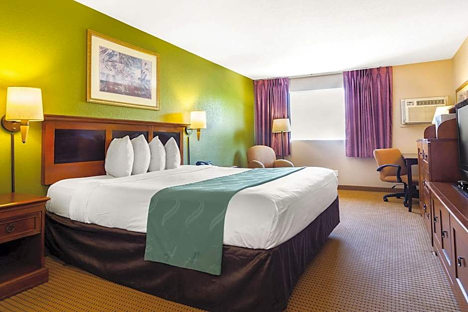 The Rodeway Inn Auburn - Foresthill offers King Rooms, Queen Rooms with Two Queen Beds, and accessible options in both King and Queen rooms, all non-smoking with a room size of 301 sqft. The King Rooms accommodate 2 adults and 1 child with 1 King bed, while the Queen Rooms accommodate 4 adults and 3 children with 2 Queen beds. Smoking is not allowed in any of the rooms.