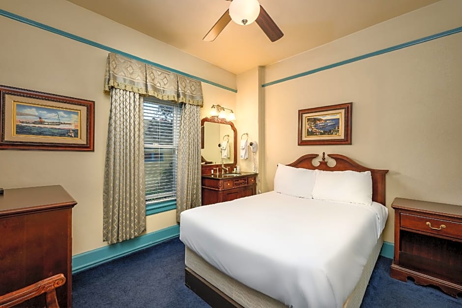 Convenient location to everything on the main strip. Free coffee, teas, oatmeal, snack bars and a pancake making machine in the lobby each morning. Free use of a microwave for guests and my room had a small refrigerator. Basic accommodations, nothing fancy here but for the price it's a great choice. Historic old building and you can see the blue Hotel Catalina sign when you pull into dock. Short walk through tourist area to hotel. Nice communal balconies to lounge about during the day or morning time with your coffee.
