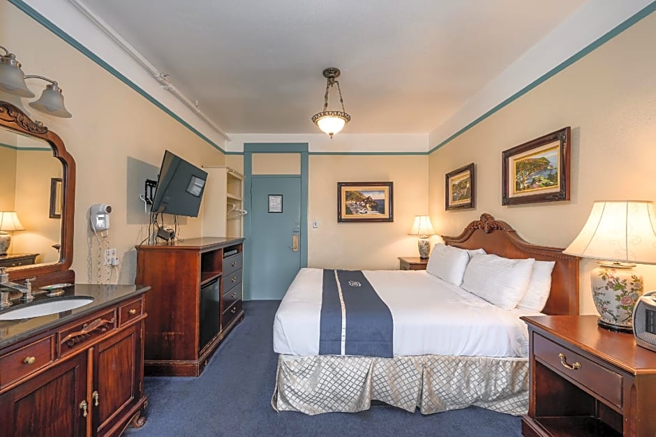 The staff was very nice. The location was perfect! Far enough off Crescent Ave to be quiet but only a 2 minute walk to get to the main street. Room was clean and the bed very comfortable.