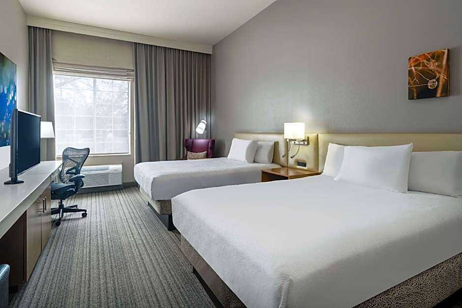 The staff here really make an effort. The reception is helpful and friendly and after a long day that makes a difference for a traveler. The room we had, with two queens, was plenty big and had a sitting area and two closets, plus and sink, frigo, microwave and coffee area. There is plenty of parking available and easy access to freeways. The coffee is good and the breakfast is a big step up from most hotels of this type. The thing I liked the most was the indoor pool and the outside jacuzzi.