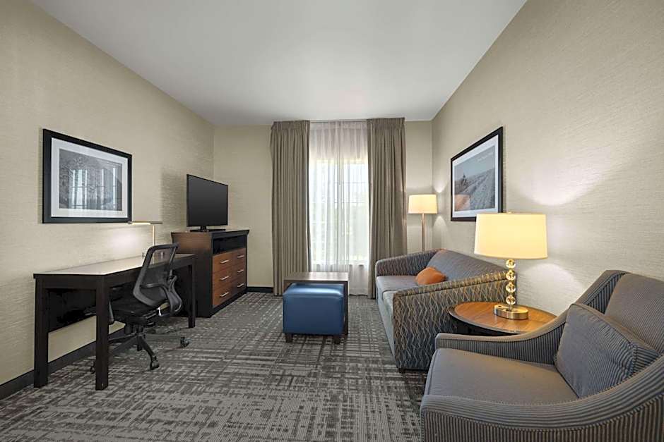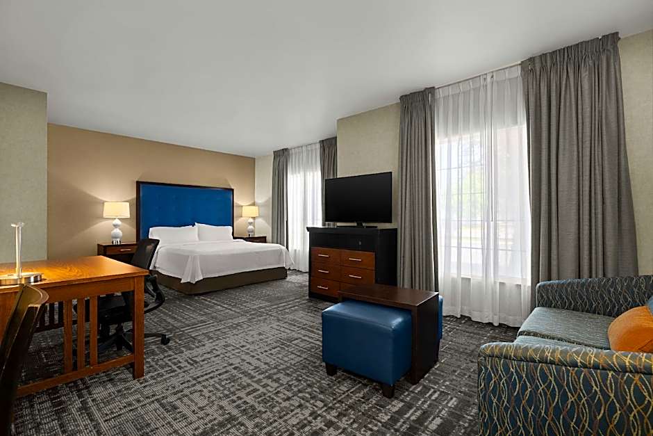 Homewood Suites Bakersfield offers a variety of room types including King Suites, Two-Bedroom King Suites, King Studios, and Queen Suites. All rooms are non-smoking and can accommodate multiple adults and children. The rooms feature different bed sizes such as King and Queen beds, along with sofa beds in some rooms. The room sizes for the King Suite, King Studio, and Queen Suite are 291 sqft.
