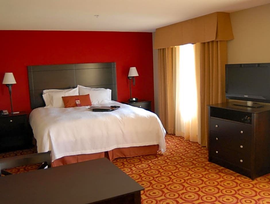 The types of rooms available at the Hampton Inn & Suites Banning/Beaumont include King Studio, King Room, Queen Room with Two Queen Beds, and King Suite. The occupancy ranges from 3 adults and 2 children to 5 adults and 4 children. Smoking is not allowed in any of the rooms. The bed sizes vary, with options including King size beds and Queen size beds.