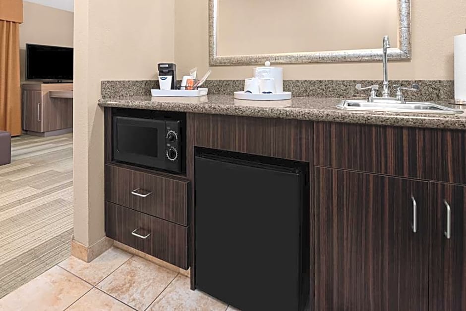 Exceptional service from accommodating and friendly staff; rooms with nice fridge and microwave, comfortable beds, available baggage carts were a huge help in getting all our bags to the room easily, and we loved the little snack/gift shop which enabled us to have a light meal in our rooms instead of going out as we were exhausted from driving all day. Conveniently located near freeway exits and stores/shopping. Had to regretfully miss the free breakfast because we left really early the next morning to continue our drive, but based on everything else I'm sure it would have been excellent. All this and pet friendly too. A little more than we usually pay for quick stops during road trips but worth every penny! Would definitely stay here again!
