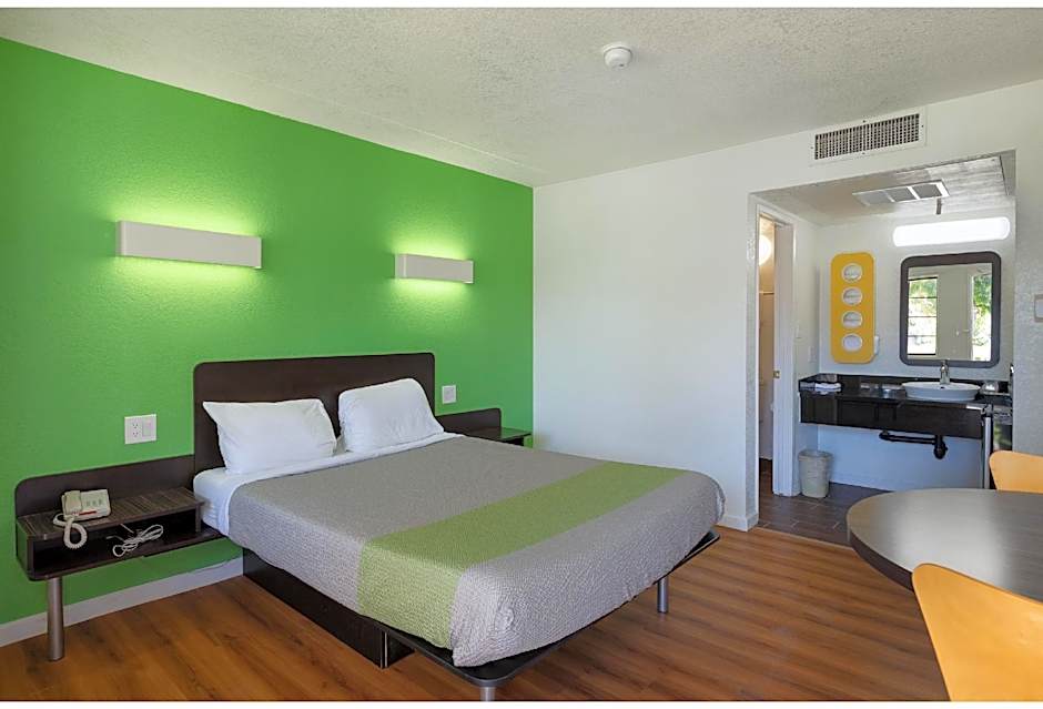 Best Motel6 I have been to. Quaint mission style architecture with orange ceramic tile roof. Classic Motel6 furniture and room set-up. Clean and white.