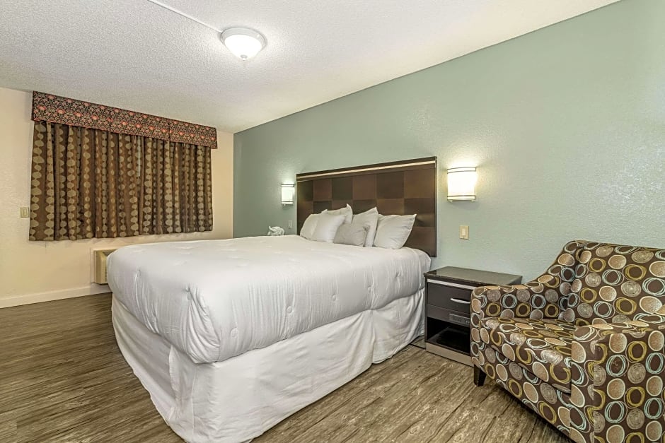 Choose from a variety of room types at the Rodeway Inn On Historic Route 66. The King Room - Non-Smoking offers a comfortable king-size bed, perfect for couples or solo travelers. The spacious Standard 2 Queen Beds - Non-Smoking room is ideal for families or groups, with two queen-size beds accommodating up to 4 adults and 3 children. Each room is equipped with essential amenities including air conditioning, a private entrance, and a private bathroom with free toiletries and a bathtub.