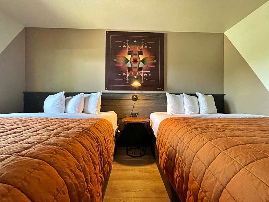Room options span from cozy Studio, King configurations to more expansive Chalet and Family layouts. Studio, King clocks in at 205 square feet and accommodates 2 adults and 1 child with a king bed; Chalet configurations cover 301 square feet with a queen bed and a sofa bed, and larger 646 square foot options such as Chalet, 2 Bedroom offer two queen beds plus a sofa bed, while Chalet, 3 Bed, 2 Bedroom also fills the larger category. The Room - 2 Queen sleeps up to 4 adults and 3 children with 2 doubles and 2 queen beds; Family, 3 Bed (355 sqft) includes a king bed and two queen beds.