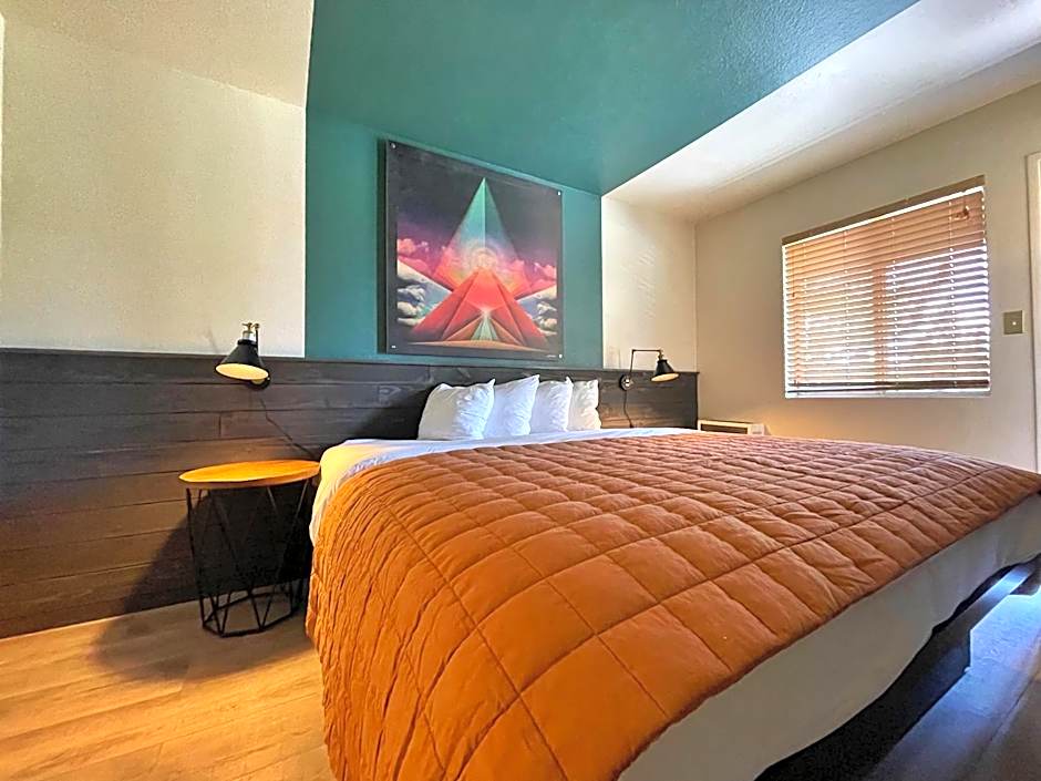 What I really liked - bed was super comfortable for both of us, everything worked as expected, had a full kitchen (unexpected since Booking.com listed the room as shared kitchen and refrigerator), paint and decor was really fun, there's a pool (also unexpected - Booking.com does not list it because it is seasonal), large bar with delicious drinks and a live band, games to play outside, fire pits also outside, owners were super-nice. Something to note - Booking.com does not indicate that there are very different types of rooms at Sessions. There are a few double-units which have full kitchens (what we had). There is a also a very large building with regular hotel rooms and a large community space and community kitchen. It's all pretty cool. Very fun place!
