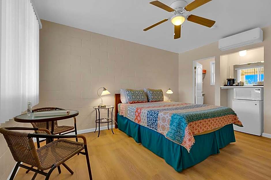 The Borrego Springs Motel offers Standard Queen Rooms, which are double occupancy rooms with a queen size bed. These rooms are not smoking allowed and can accommodate 2 adults and 1 child. The room size is approximately 205 sqft.