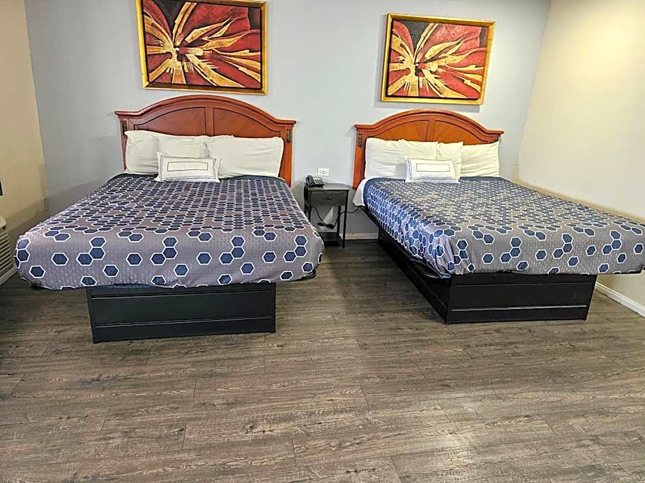 The California Suites Motel offers a variety of room types including King Rooms and Queen Rooms with Two Queen Beds, both accommodating 2 adults and up to 4 adults respectively. The rooms are all non-smoking and range in size from 151 sqft to 355 sqft. Bed options include King size, Queen size, and Double beds.