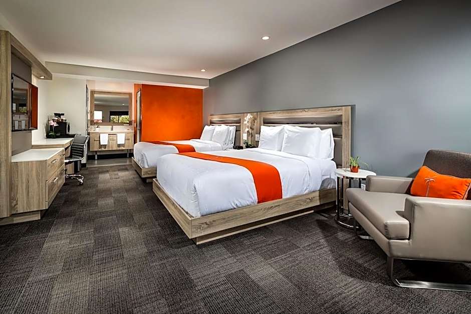 The Canoga Hotel at Warner Center offers a Queen Room with Two Queen Beds, suitable for families, with a room size of 248 sqft. Smoking is not allowed, and it can accommodate 4 adults and 2 children. There is also a King Room available, a double room with a room size of 248 sqft, no smoking allowed, and accommodates 2 adults and 1 child with a King size bed.