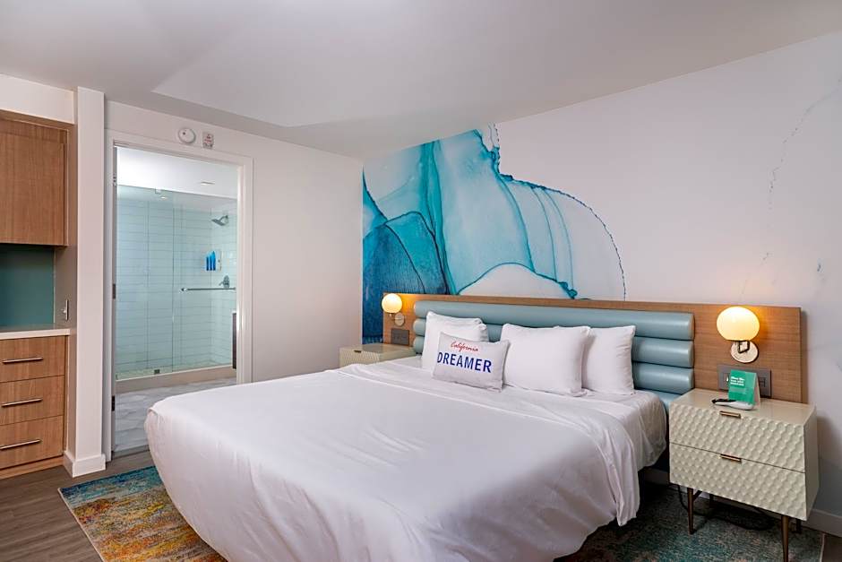 I liked that there was a coffee shop on site and that guests received 40% off...that was a huge bonus with not having a breakfast. I was able to grab quick snacks like yogurt for the kids and coffee for us. The rooms felt new and clean! I thought they were so cute! The beds were the best beds we've been in at a hotel in a LONG time which is just great to see they spent some money on that and not just the looks. I was bummed at first to be a bit further out of San Diego but it was SO nice to be out where you could see the water and there was a lovely walking trail we took with the kids! They even had free bikes to use and scooters for kids but we had a little one too so we couldn't do it, but so great for older kids!