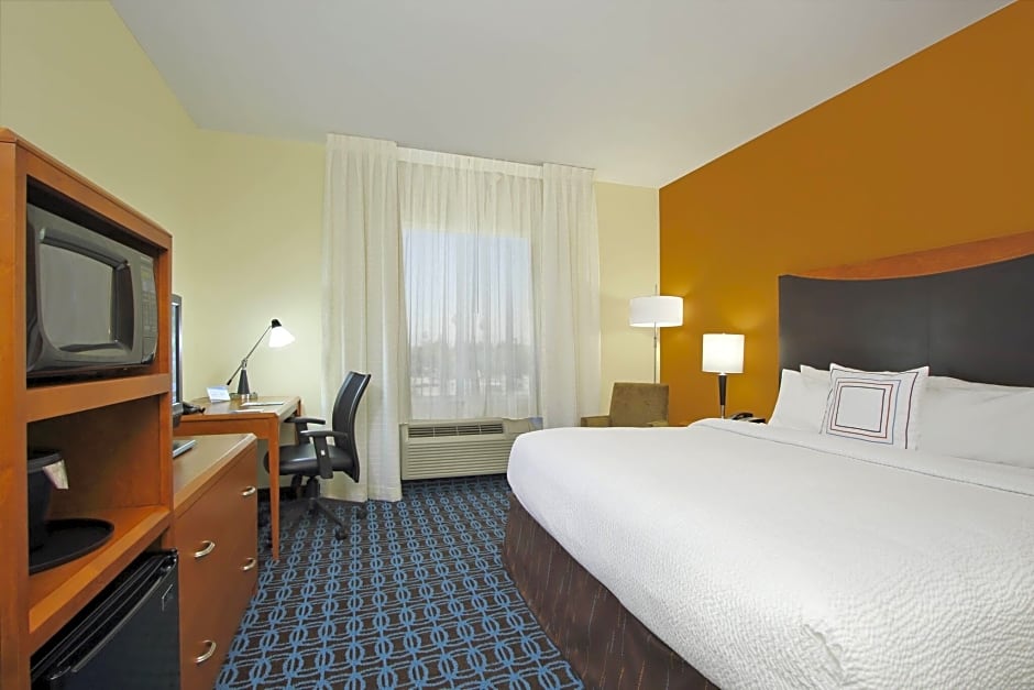 The Fairfield Inn & Suites Fresno Clovis offers a variety of room options. The King Room is a family room with a King size bed, accommodating 2 adults and 1 child. The Queen Room with Two Queen Beds is a double room, accommodating 4 adults and 3 children. The King Suite with Sofa Bed is a suite with a King size bed and a sofa bed, also accommodating 4 adults and 3 children. Smoking is not allowed in any of these rooms.