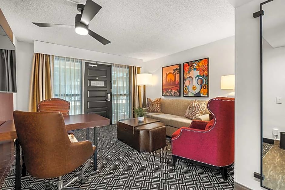 Spacious two-room suite with a beautifully decorated bedroom and separate living area for your comfort, featuring space to relax in the bedroom with the Suite Dreams king-sized bed, plush-top mattress, duvet and throw. The bedroom includes a well-lit vanity, two armoires, iron and board, 32-inch TV and alarm clock radio with MP3 connection. The bathroom features a marble vanity and shower with tub. Space to work in the living room with activity table, and WiFi access are also provided. Living room features a space to play with a 32-inch TV, sofa bed, arm chair, wet bar, sink, mini-refrigerator, microwave and coffeemaker. Variety of pay-per-view movies, games and 36 complimentary TV channels are also available. Rates include full made-to-order breakfast and Evening Reception in our tropical atrium, which offers a convivial atmosphere. For your Comfort Air Conditioning Black-Out Curtains Clock Radio w/ MP3 Connection Curved Shower Rod Duvet Covers Embassy EssentialsTM Bedding Ergonomic Desk Chair Feather Pillows Non Allergenic Flexible Work Environment HD Channels In-Room Movie Channel Non-Smoking Seating Area with Sofa Sleeper Spacious Two Room suite TV - 32 Inch LCD HD TV-Cable TV-Pay per view TV-Premium HBO,CNN,ESPN TV-Standard Network For your Convenience Bathroom Amenities Ceiling Fan Complimentary Hot Breakfast Convenient Electrical Outlets Desk Level Electric Plugs Electronic Newspapers Electronic Program Guide Evening Manager's Reception Hairdryer High Speed Internet Access In-Suite Coffee/Welcome Caddy Iron Iron/Ironing Board Microwave Mini Refrigerator Remote-Controlled Television Self Laundry Available Telephone - Auto Wakeup Telephone - Two Lines Telephone - Two Phones Telephone - Voice Mail Telephone - with Dataport Telephone-with Speaker phone For your Confidence Alarms - Audible Double Locking Doors Electronic Locks Electronic Smoke Detector Thumb Dead Bolt Visual Strobe/Hearing Impaired
