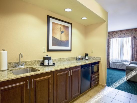Sofa bed, free WiFi, 42-inch LCD HDTV, soft seating, desk, refrigerator, microwave Unwind in this spacious studio suite which features a king-sized clean and fresh Hampton bed®, a convenient sofa bed, comfortable soft seating, and a 42-inch LCD HDTV. Catch up on work at the large desk with ergonomic chair, or surf the web with free WiFi access. Refresh in the bathroom which has a WaterPik showerhead and curved shower rod that allows more light and space in the shower. This room also has a refrigerator and microwave.