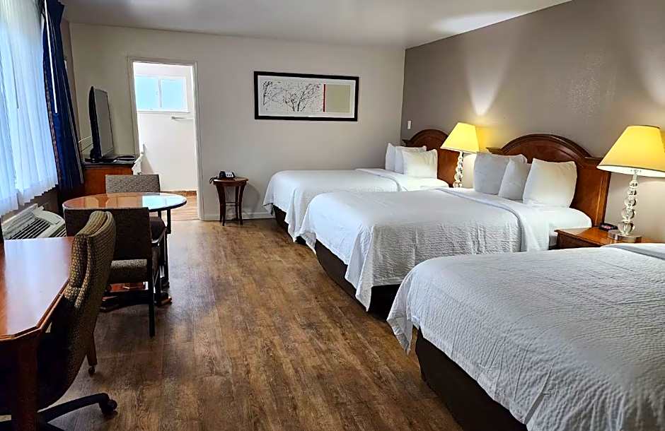 The BaySide Inn & Suites Eureka offers a variety of room types including Two-Bedroom Suites, Queen Rooms, Double Rooms with Two Double Beds, Basic Triple Rooms, and Executive King Rooms. All rooms are non-smoking and have a room size of 205 sqft. The occupancy varies depending on the room type, ranging from 2 adults and 1 child to 6 adults. Bed sizes include Queen, Double, and King.