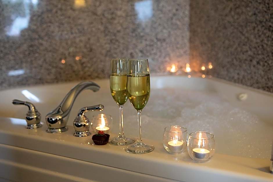 Featuring a jetted tub for two and a electric fireplace, this suite includes free WiFi, a TV with cable channels, a DVD player, a refrigerator, a coffee machine, a fan, a safe, and a separate private bathroom with a shower.