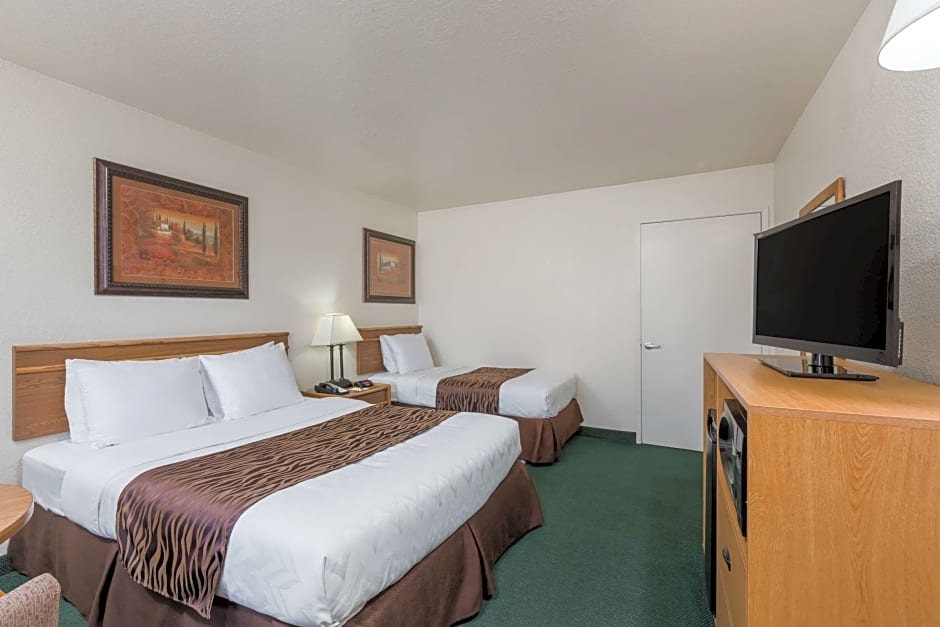 Great 4 night stay at Super 8. Booked through Bookings.com. Brought my two dogs, $20 per dog per night. This is a basic, clean, ample parking, WiFi included room with hard floors vs carpet. Perfect for my stay with dogs. Friendly, helpful staff at check in, check out and with cleaning staff who I communicated with. Quite professional. Clean downstairs room with queen bed, non smoking, nice blackout shades for setting sun. Refrigerator, microwave, no hair dryer (not a problem), cable TV on flat screen TV, good WiFi. Good size room including table and chairs. Bathroom sink area has been updated. Blow dryer missing but there was a wall mount. Plenty of hangers. Lots of parking, adjacent to Mountain Mike's Pizza and Chevron. Very clean grounds. Continental breakfast in morning: cereal, toast, oatmeal, coffee and tea. I didn't try it but there was a line and lobby full of people 7-10am each day. Quiet mostly, next door guests baby crying lots and their dog barked. Consulted management at checkout. They suggested next time I call them with each occurrence. My dogs fortunately were quiet. I would stay here again. Also if my stay was as good as this time they could easily be rated 5 stars.