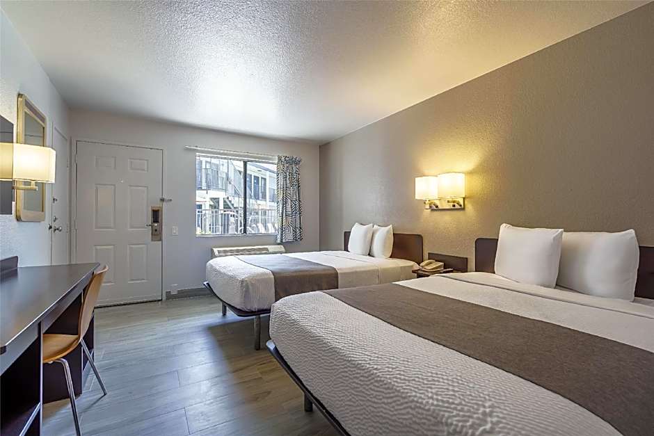 The Motel 6-Fremont, CA - North offers several types of rooms. They have Queen Rooms with disability access and roll-in showers, Deluxe Suites, Deluxe Quadruple Rooms, and regular Queen Rooms. Smoking is not allowed in any of the rooms. The Queen Rooms accommodate 2 adults and 1 child, while the Deluxe Suite accommodates 4 adults and 3 children. The bed sizes vary between Queen and Double beds.