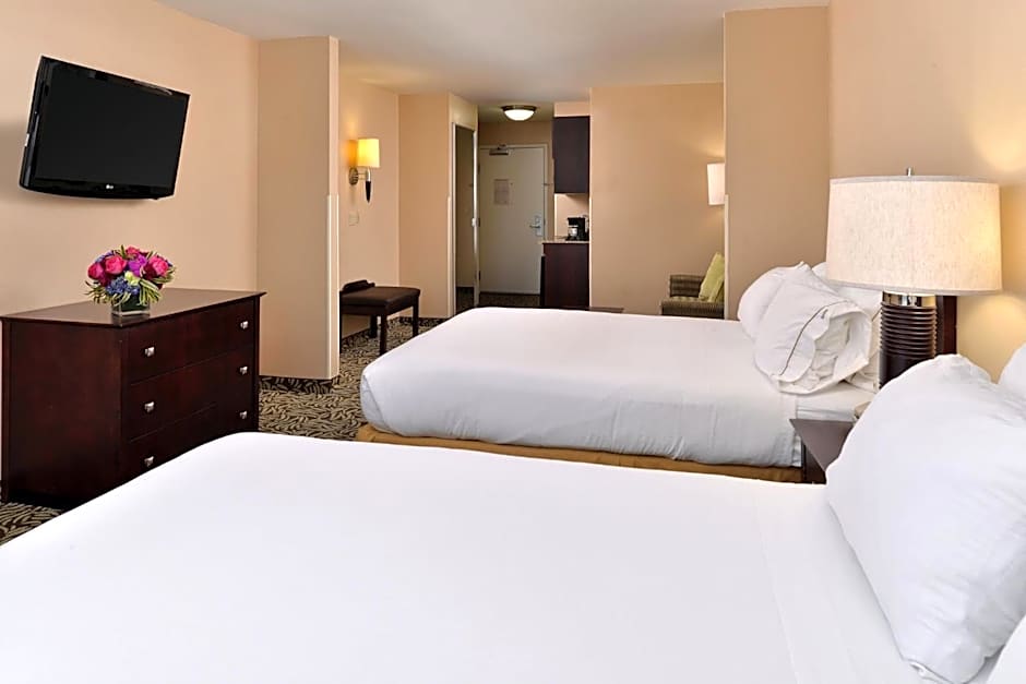 At the Holiday Inn Express Fresno River Park Highway 41, there is a Queen Suite - Disability Access that can accommodate up to 4 adults and 3 children. It features 398 sqft of space, with 1 sofa bed and 2 queen-size beds. Smoking is not allowed in this suite.