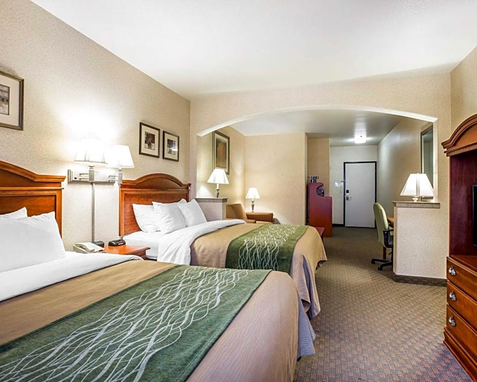 The Comfort Inn & Suites Galt - Lodi North offers various room types, including King Rooms, King Suites, Queen Rooms with Two Queen Beds, and Queen Suites with Two Queen Beds. All rooms are non-smoking and have different occupancy limits, ranging from 2 adults and 1 child to 6 adults and 4 children. The bed sizes available include King size beds, Queen size beds, and Sofa beds, and the room sizes vary from 291 sqft to 398 sqft.